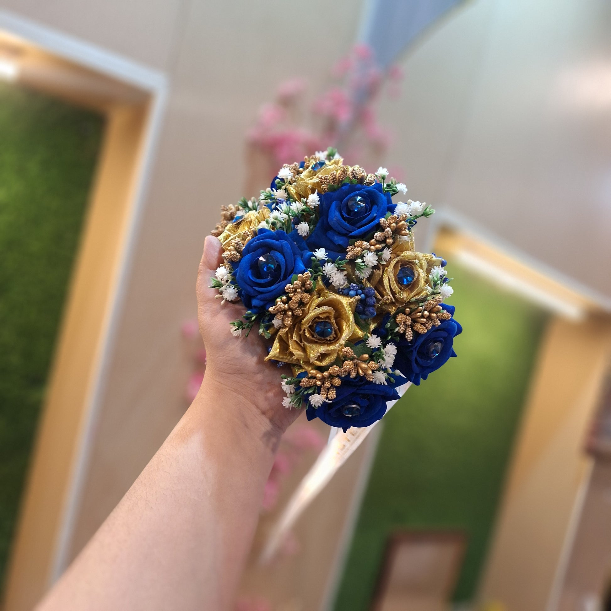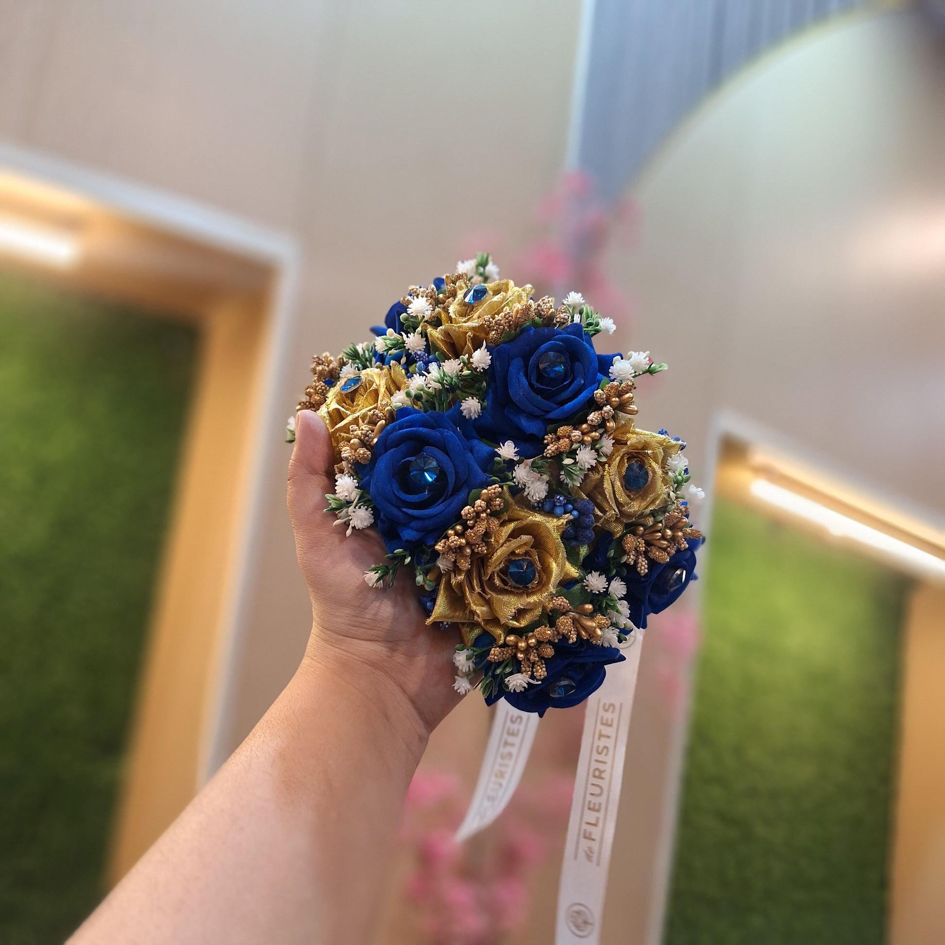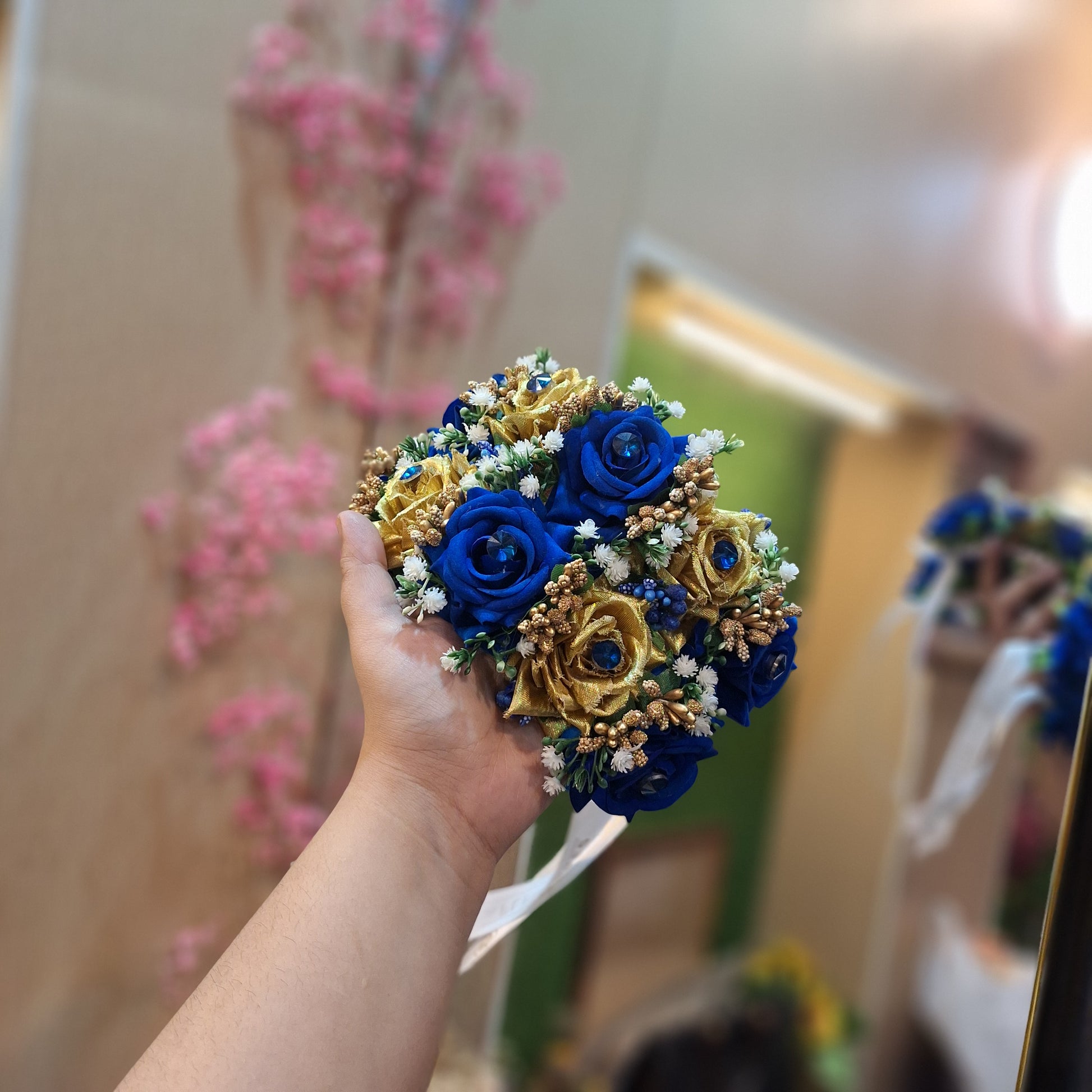 Crafted with premium artificial flowers, the Azure Aura bracelet exudes elegance and charm. This floral accessory is perfect for adding a touch of refinement to any outfit, without the hassle of wilting petals. Enhance your style with the lasting beauty of the Azure Aura.