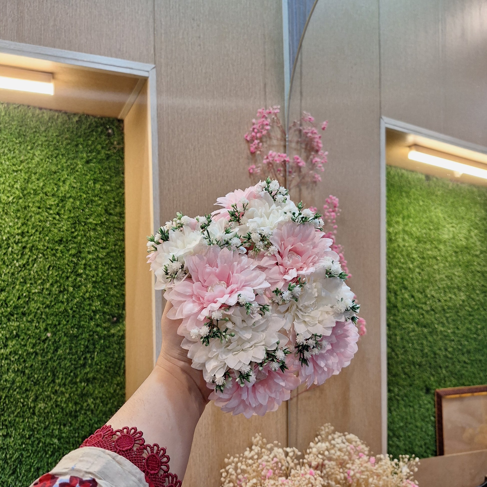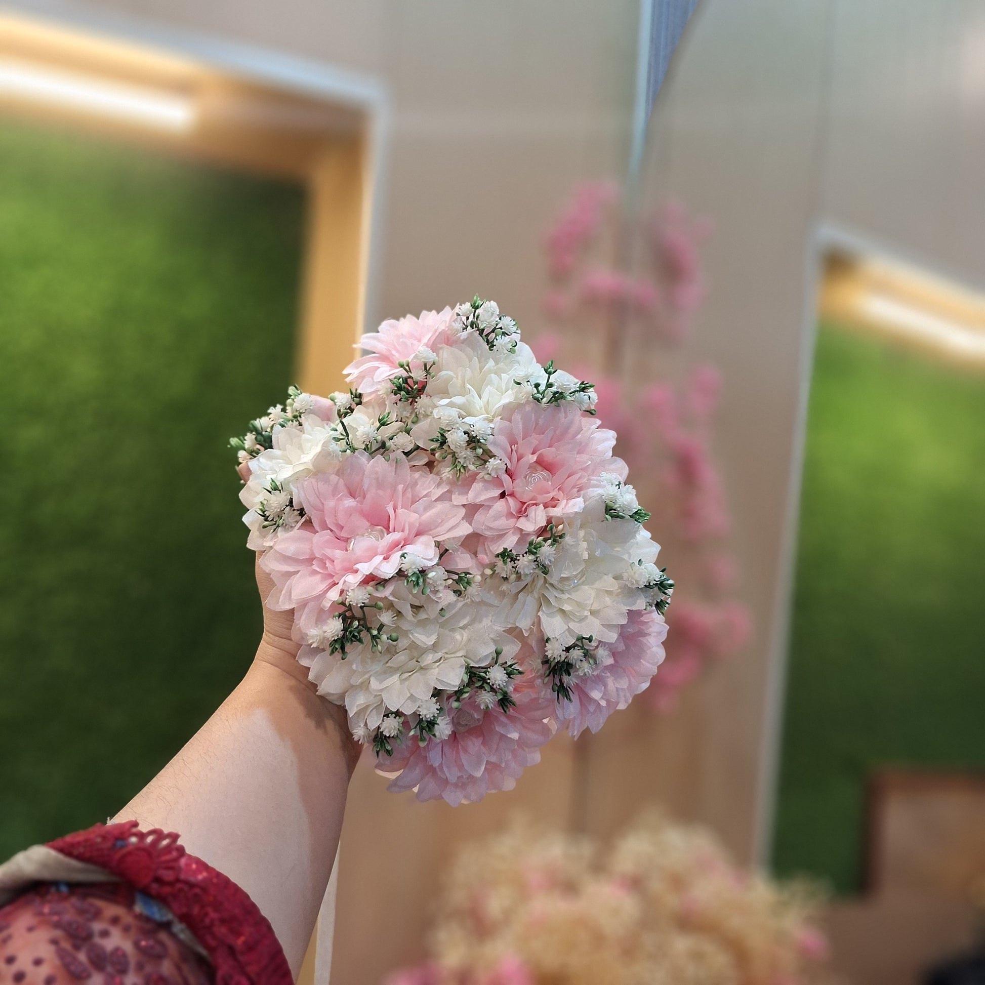 This premium artificial floral bracelet, called Baby Blush, adds a touch of beauty and elegance to any outfit. Crafted with high-quality materials, it offers a natural and realistic appearance. Perfect for special occasions or everyday wear, it's a versatile and trendy accessory for any fashion-forward individual.