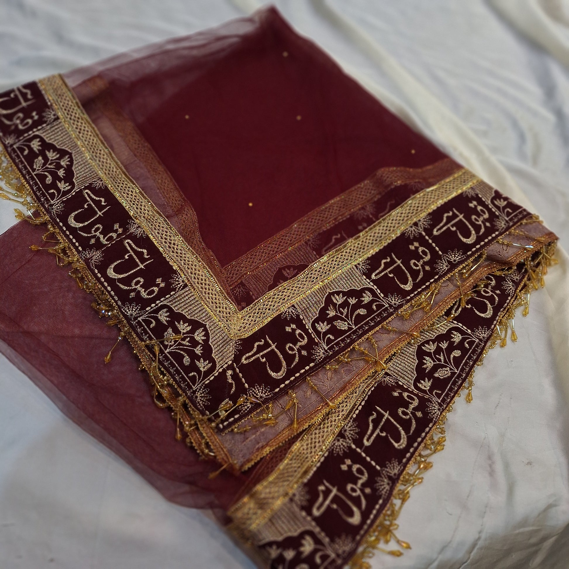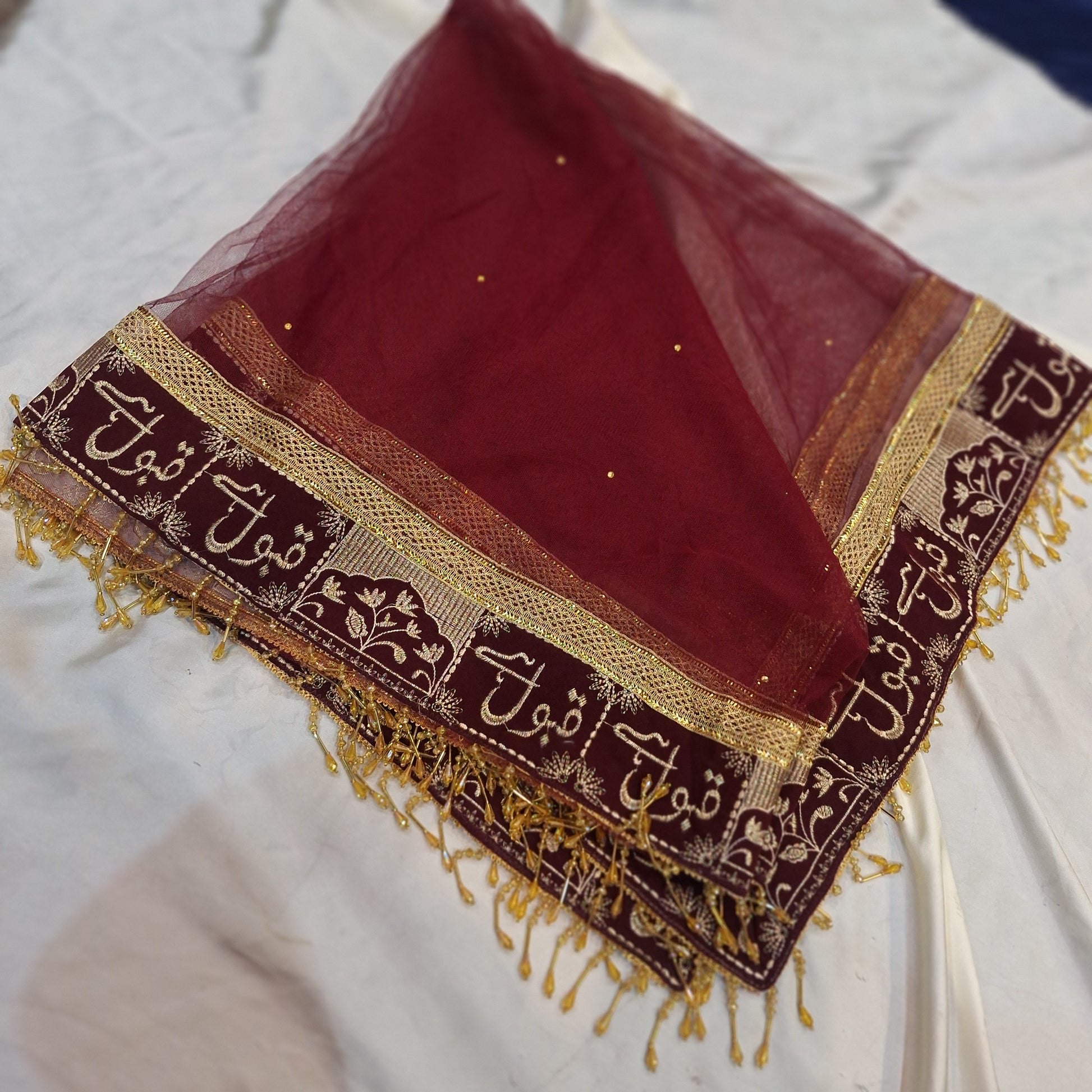 Expertly crafted with premium quality fabric, the Dreamy Hues Duppata is the perfect accessory for any nikkah ceremony. With its luxurious feel and stunning design, it adds a touch of elegance to any outfit. Elevate your style with this must-have duppata.