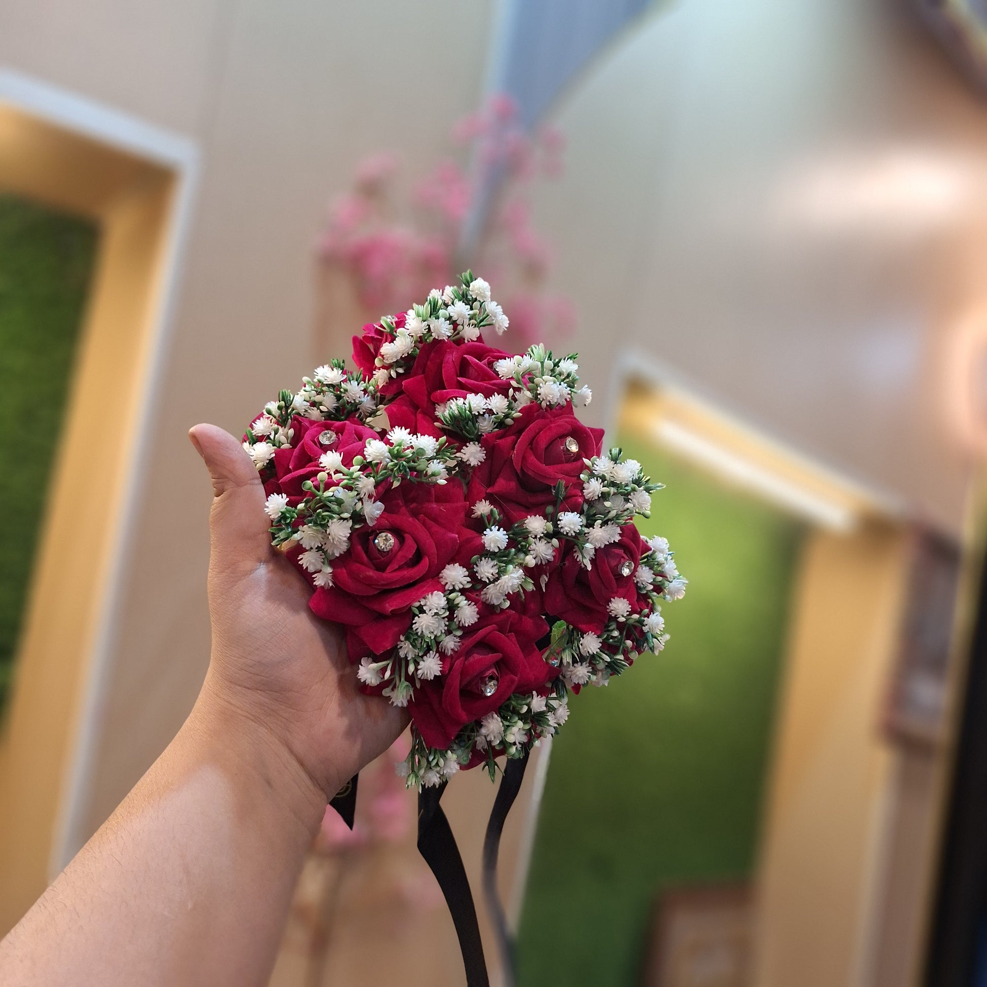 This premium artificial velvet rose floral bracelet adds a pop of color and elegance to any outfit. Handcrafted with attention to detail, it is a must-have accessory. The soft velvet material ensures comfortable wear while the striking pink color offers a touch of sophistication to your look.