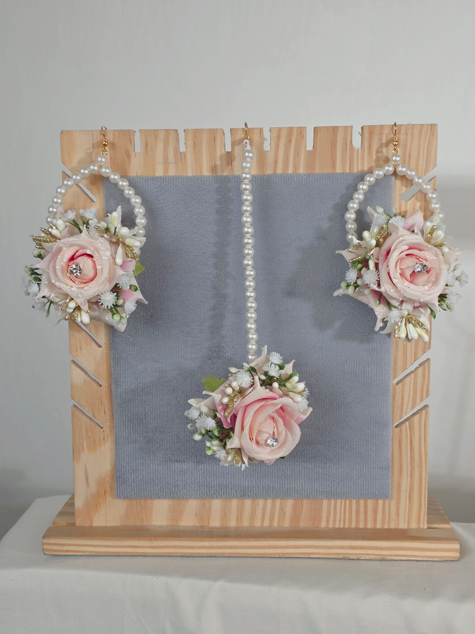 Artificial Flower Jewelry for Bride, Pakistani Wedding Gajras, Floral Hoops and Tikka Set.