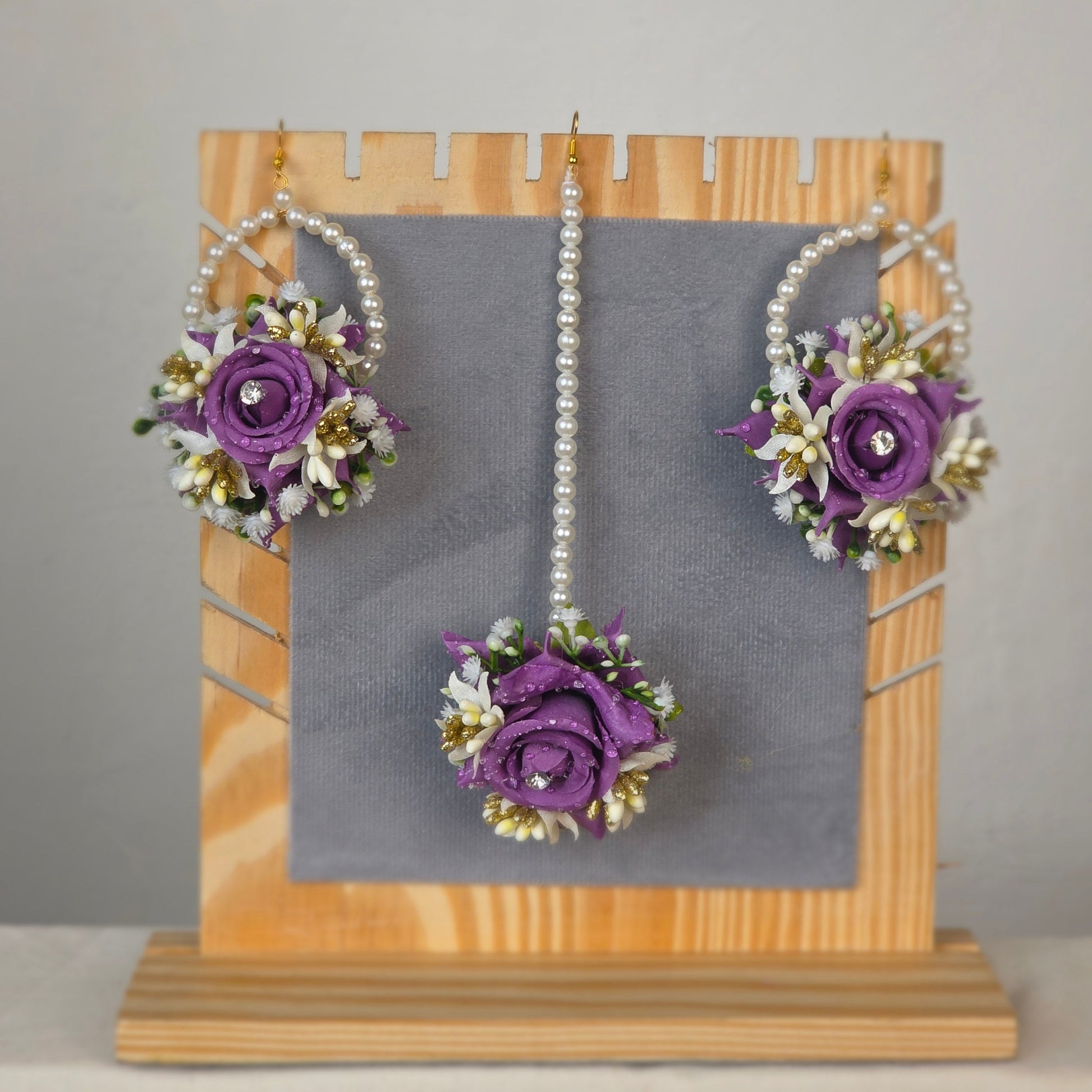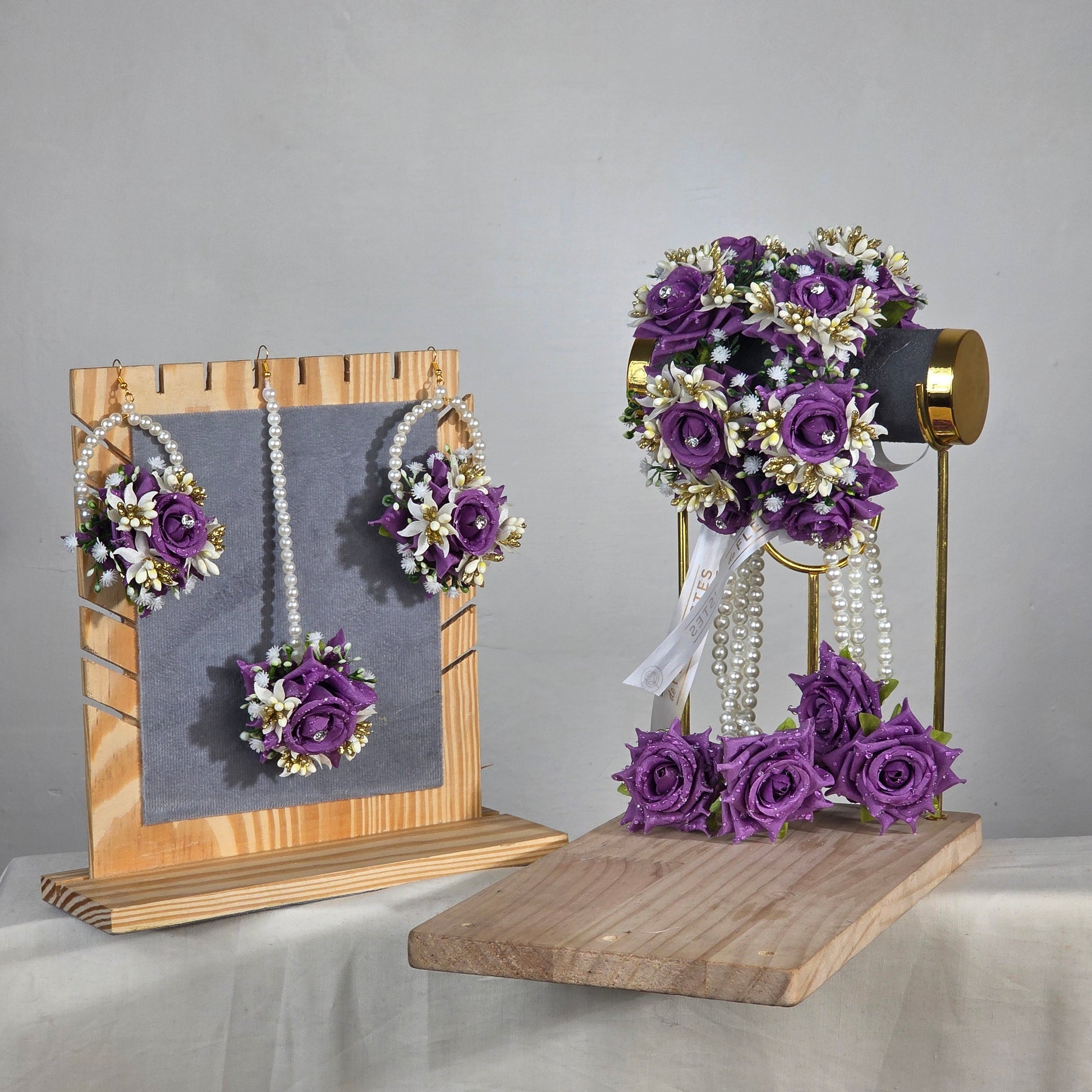 - Mauve Floral Jewelry Set, Artificial Purple Flower Jewelry, Nikah Jewelry for Bride, Dusty Purple Gajras, Designer Floral Earrings.