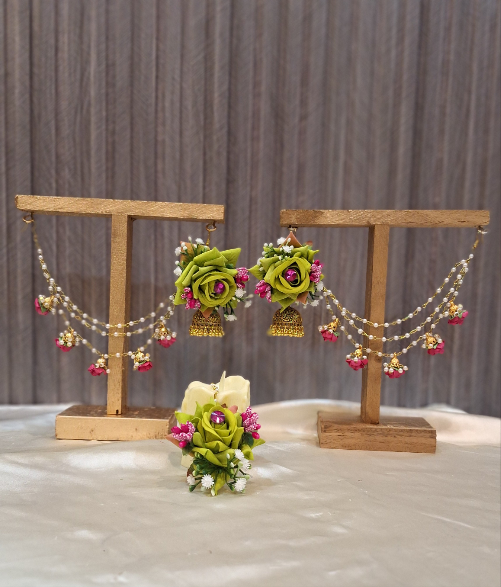 Introducing the Zeenat Ensemble, a premium artificial rose adorned with saharay and bindiya. Made with luxurious velvet, baby's breath, and delicate mini flowers, this ensemble is elevated with a touch of sparkling stones. Elevate any occasion with this exquisite piece.
